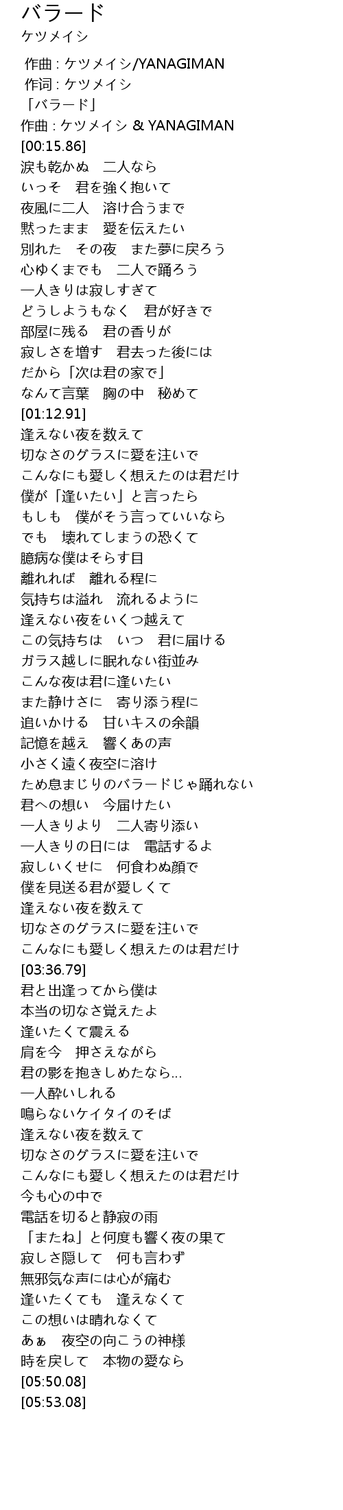 [00:00.00] 作曲 : ケツメイシ/YANAGIMAN