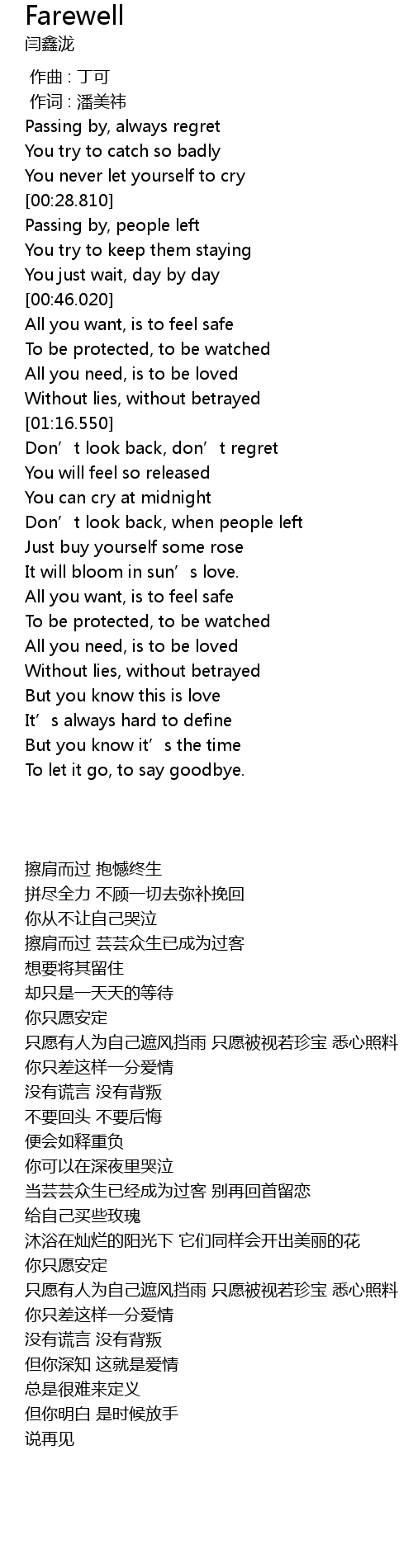 | [02:26.850] | Without lies, without betrayed |