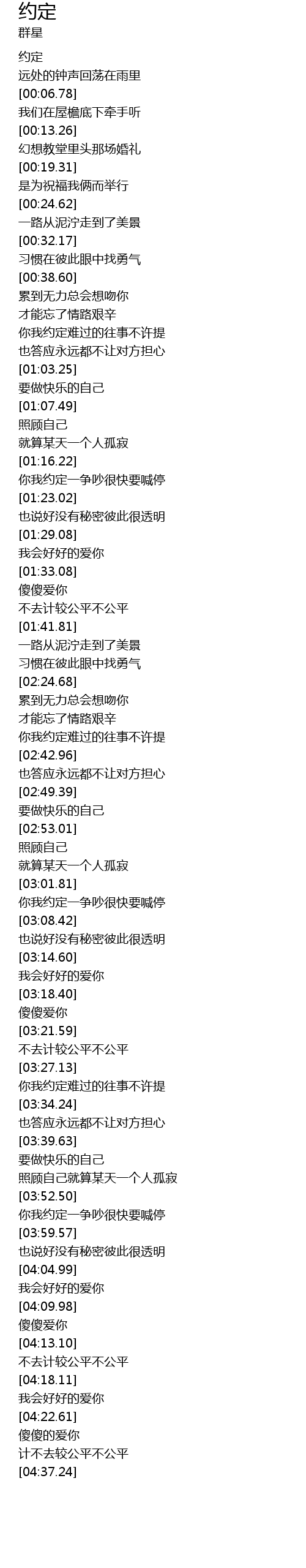 | [03:54.39] | 你我约定一争吵很快要喊停 |