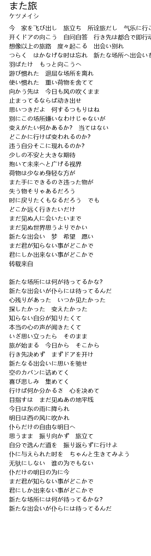 | 想像以上の旅路 度々起こる 出会い别れ | |