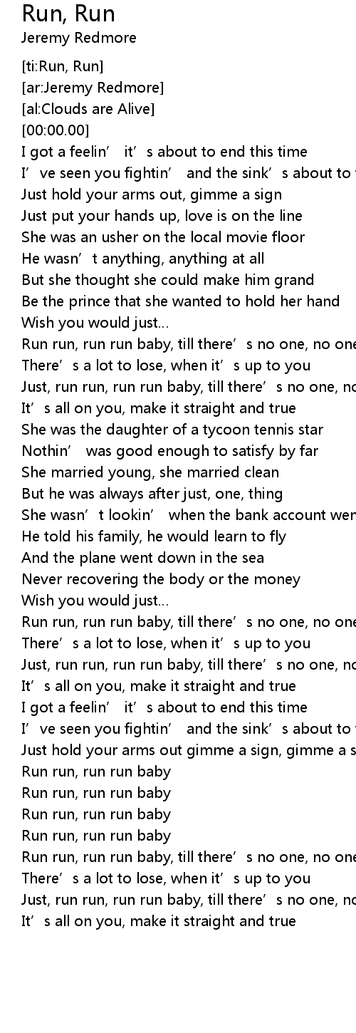 | [03:34.00] | Run run, run run baby, till there’s no one, no one comin’ |