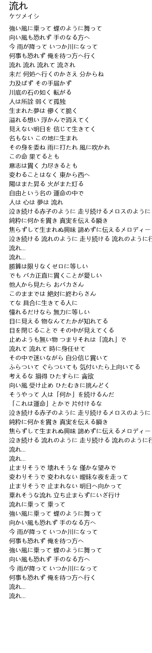 | 泣き続ける 流れのように 走り続ける 流れのように行く | |