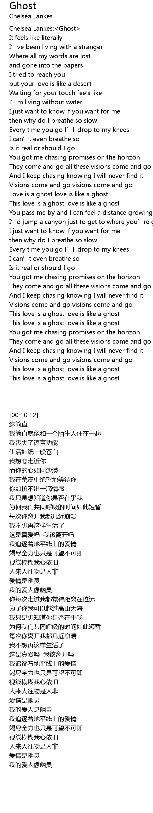 | [00:10.12] | Chelsea Lankes: Ghost |