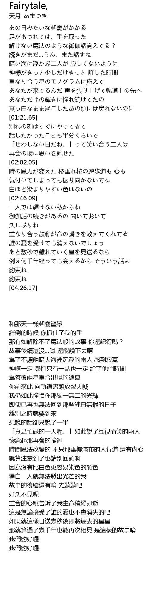 | 歌曲 | Fairytale, |
