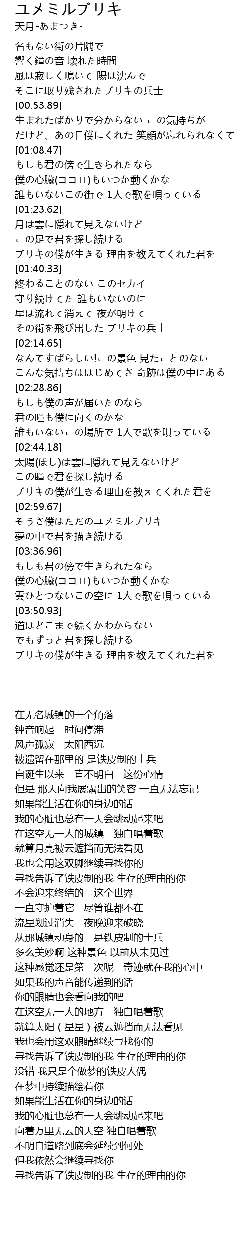| [03:29.05] | そうさ僕はただのユメミルブリキ |