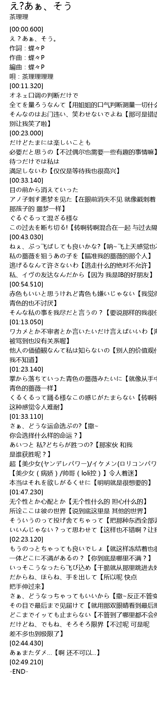 | [00:50.700] | 私、イヴの友达なんだから【因为 我是IB的好朋友】 |