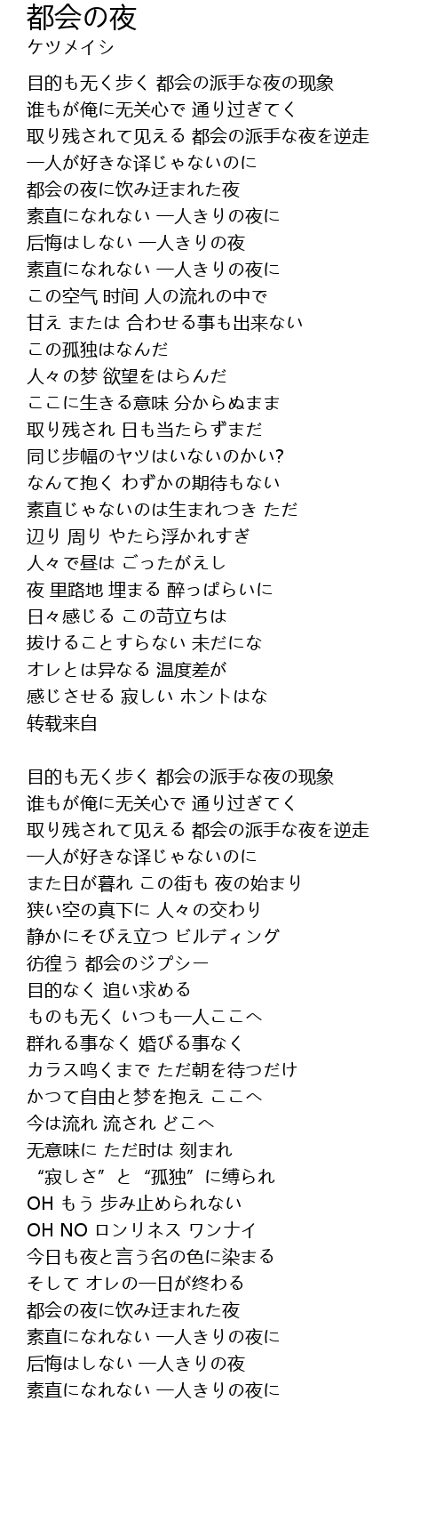 | 取り残されて见える 都会の派手な夜を逆走 | |