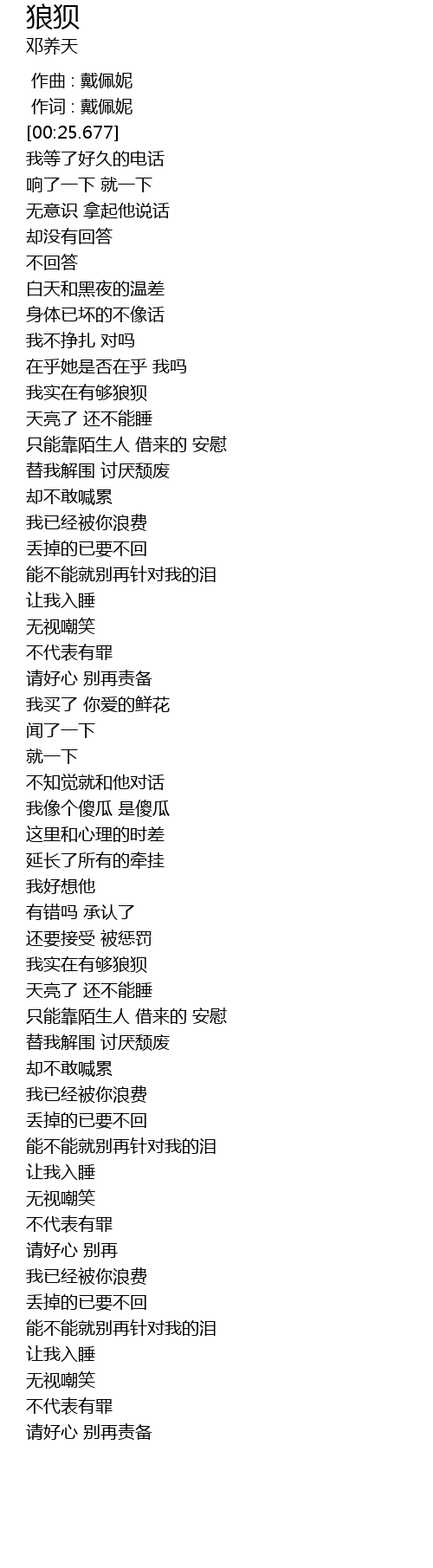 | [00:00.00] | 作曲 : 戴佩妮 |