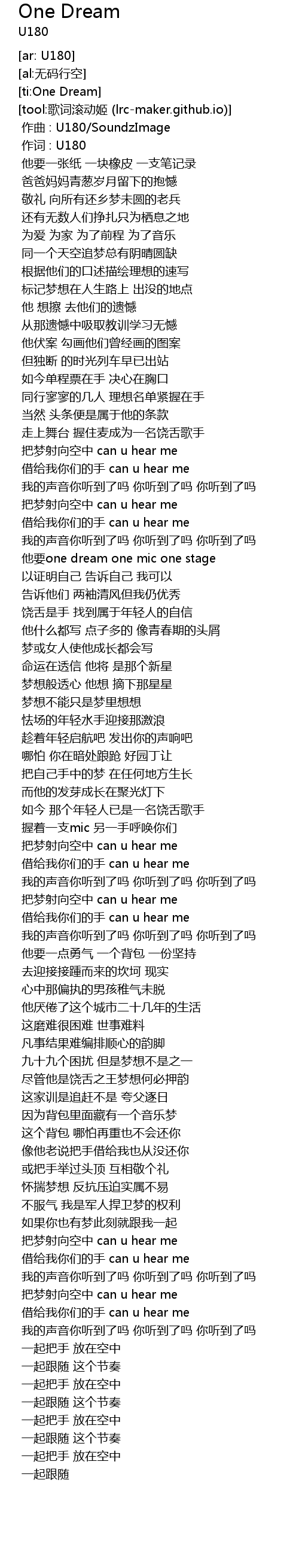 | [01:18.718] | 把梦射向空中 can u hear me |