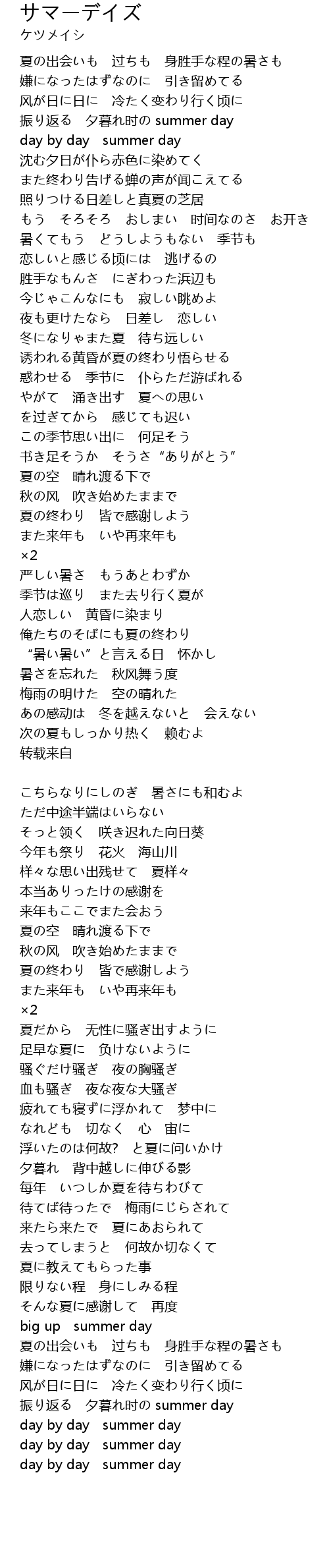 | 夏の出会いも 过ちも 身胜手な程の暑さも | |