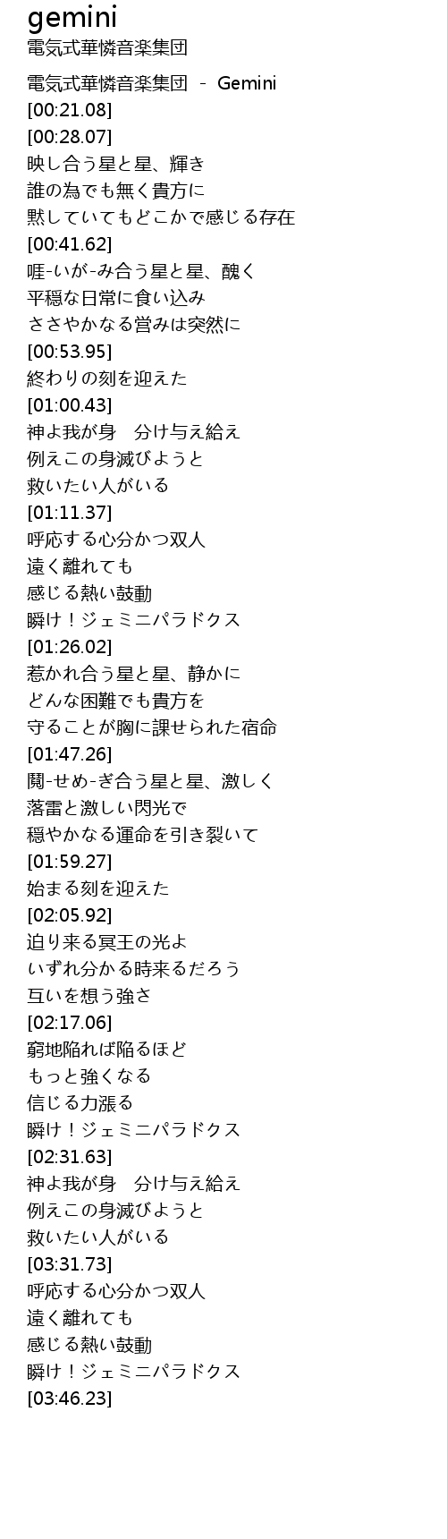 | [00:00.01] | 電気式華憐音楽集団 - Gemini |
