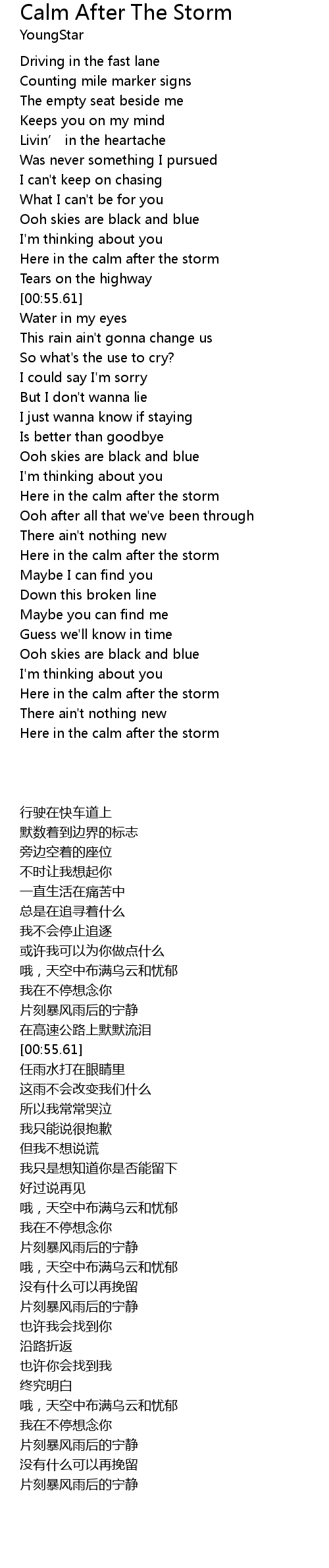 | [00:48.67] | Here in the calm after the storm |