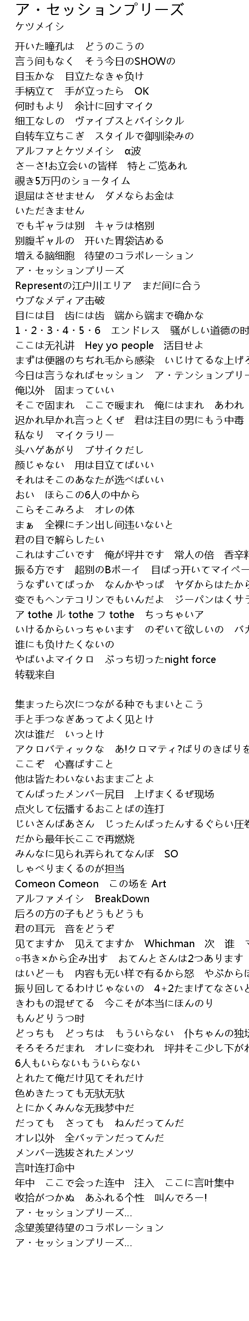 | 今日は言うなればセッション ア・テンションプリーズだがフリーズ | |