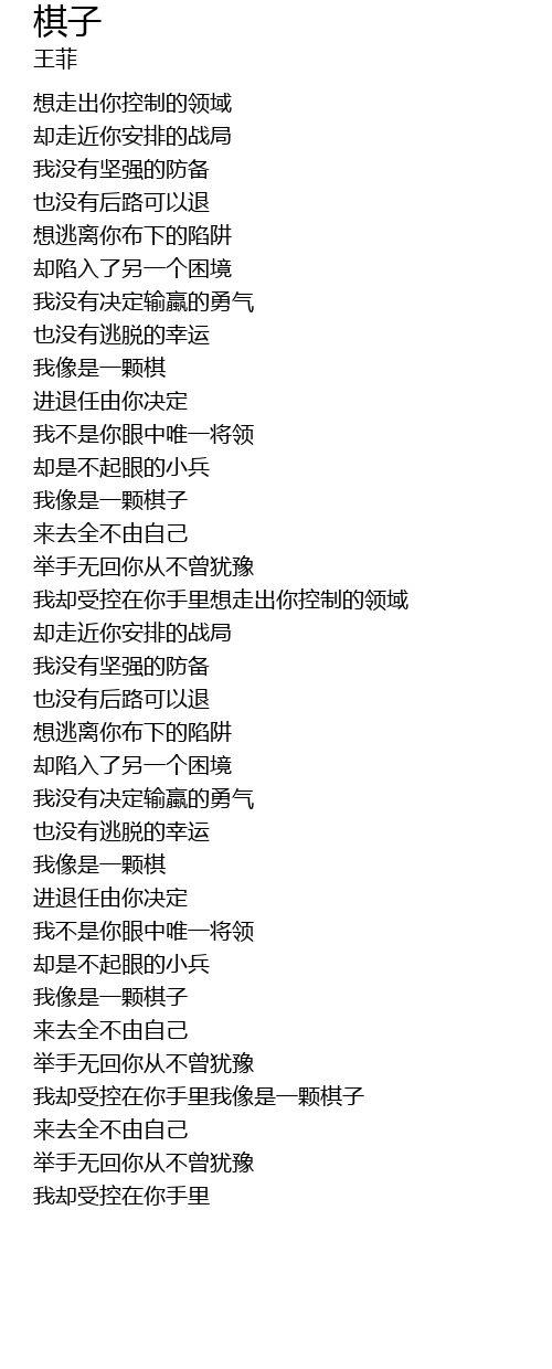 | [03:52.881] | 我却受控在你手里我像是一颗棋子 |