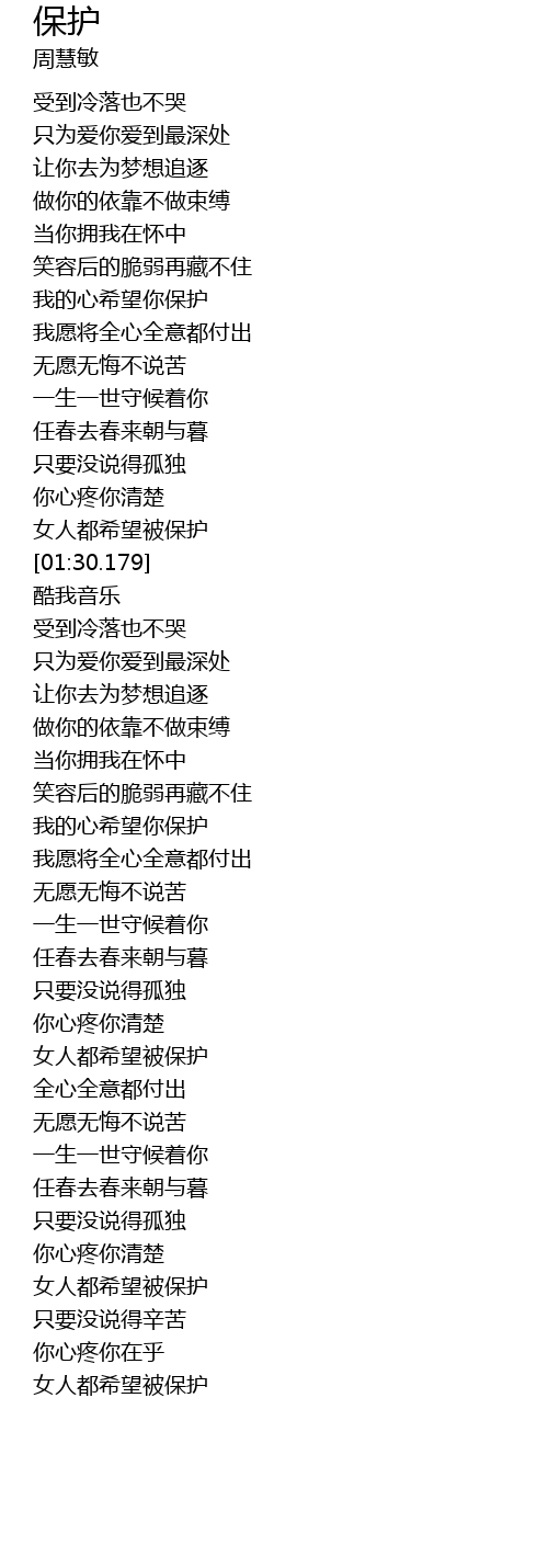 | [00:53.518] | 我的心希望你保护 |