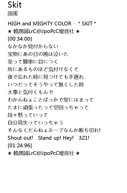 | [00:02.00] | HIGH and MIGHTY COLOR - *SKIT* |