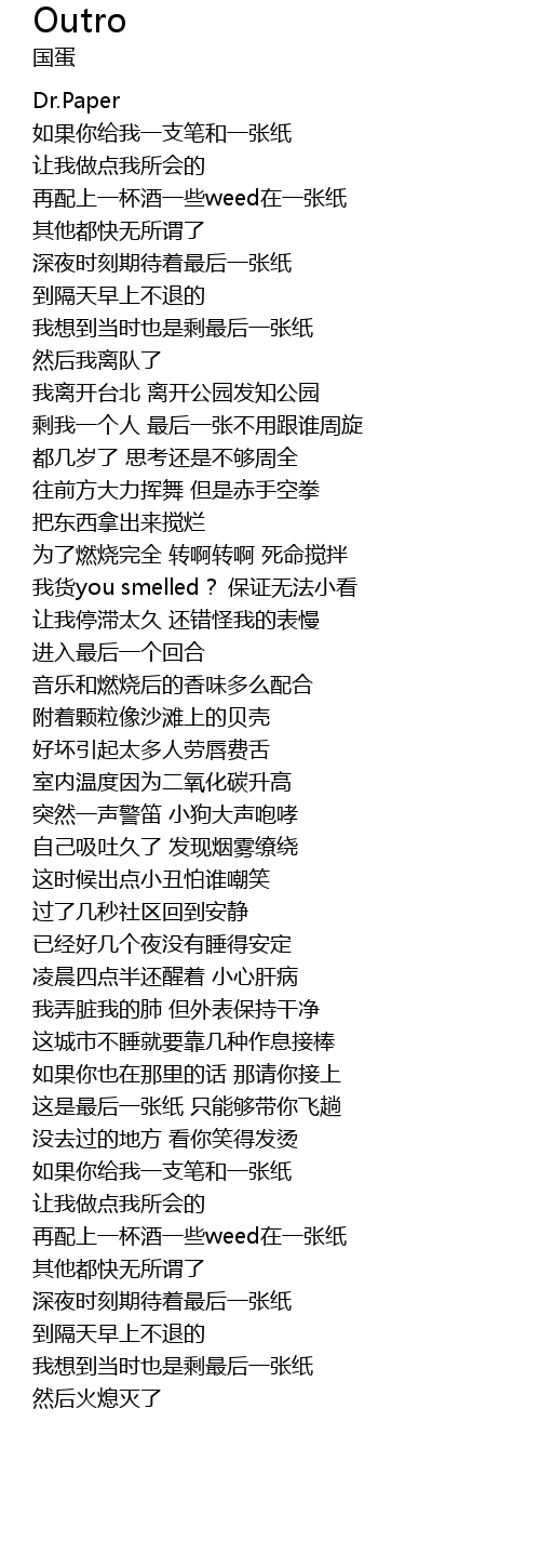 | [00:28.59] | 再配上一杯酒一些weed在一张纸 |