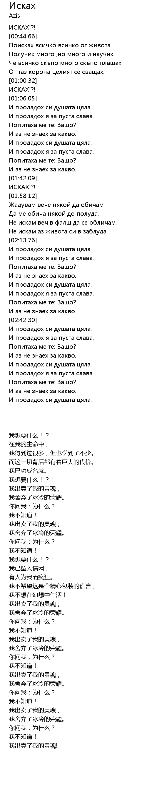 | [02:00.53] | Жадувам вече някой да обичам. |