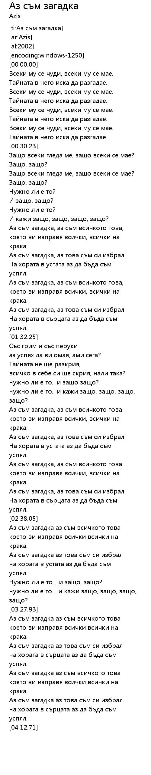 Аз съм загадка 歌词