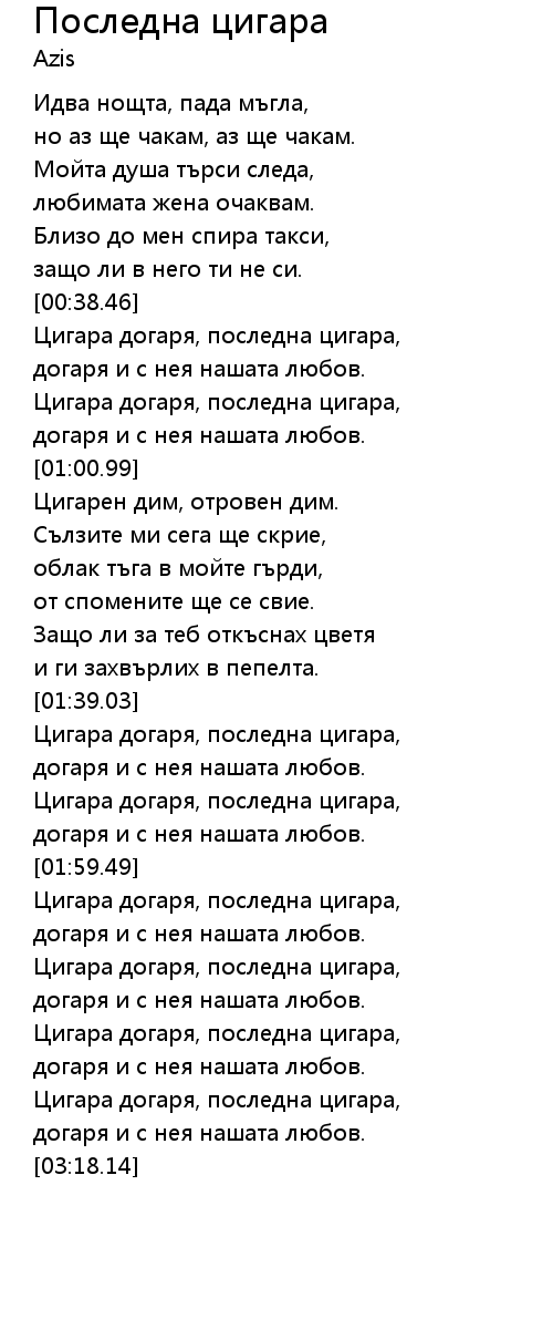 [03:07.37] Цигара догаря, последна цигара,