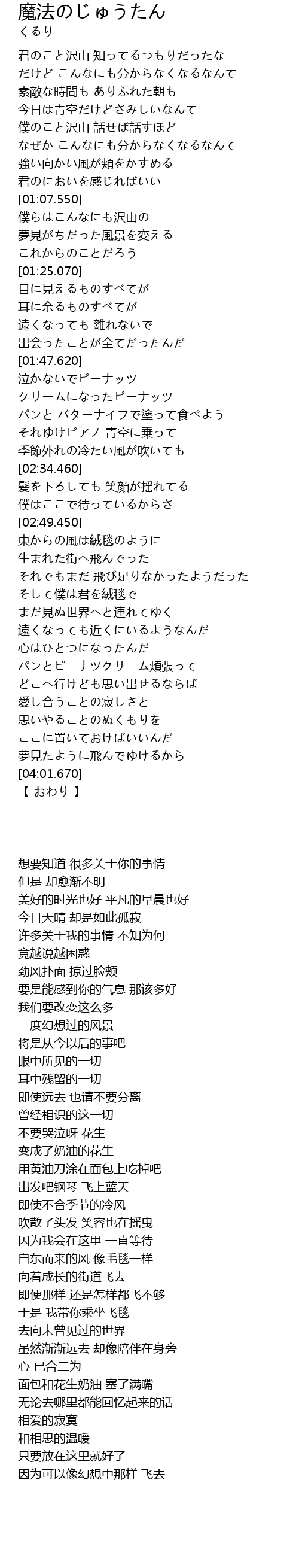 | [00:06.250] | 想要知道 很多关于你的事情 |
