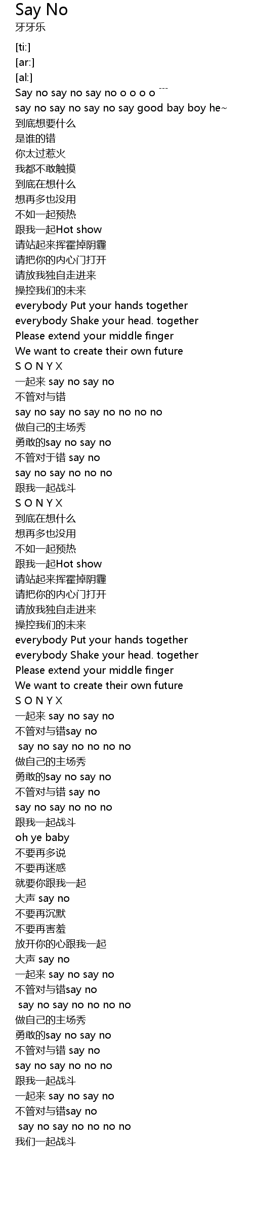 | [00:03.79] | Say no say no say no o o o o ﹉ |