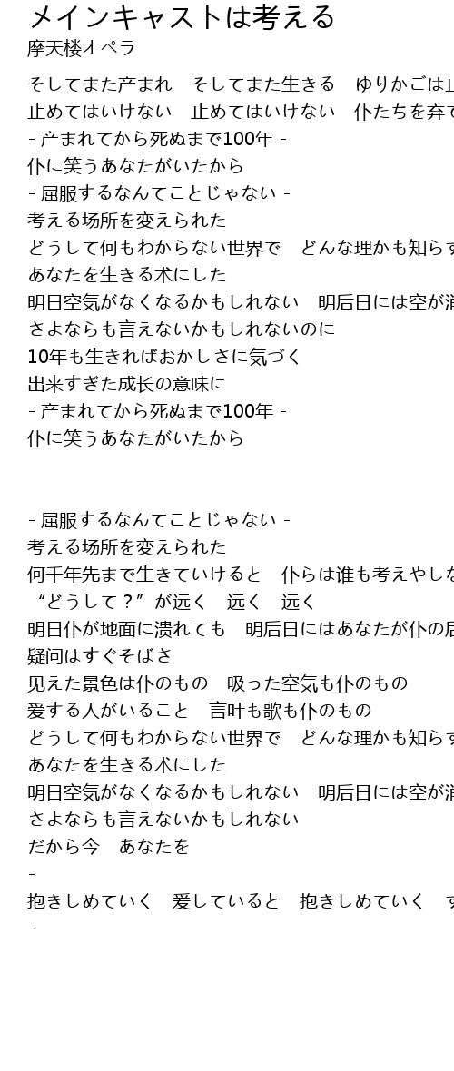 | 何千年先まで生きていけると 仆らは谁も考えやしない | |