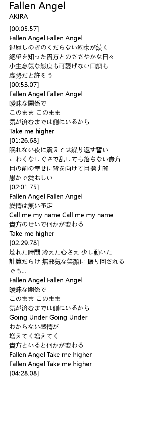 | [04:16.17] | Fallen Angel Take me higher |