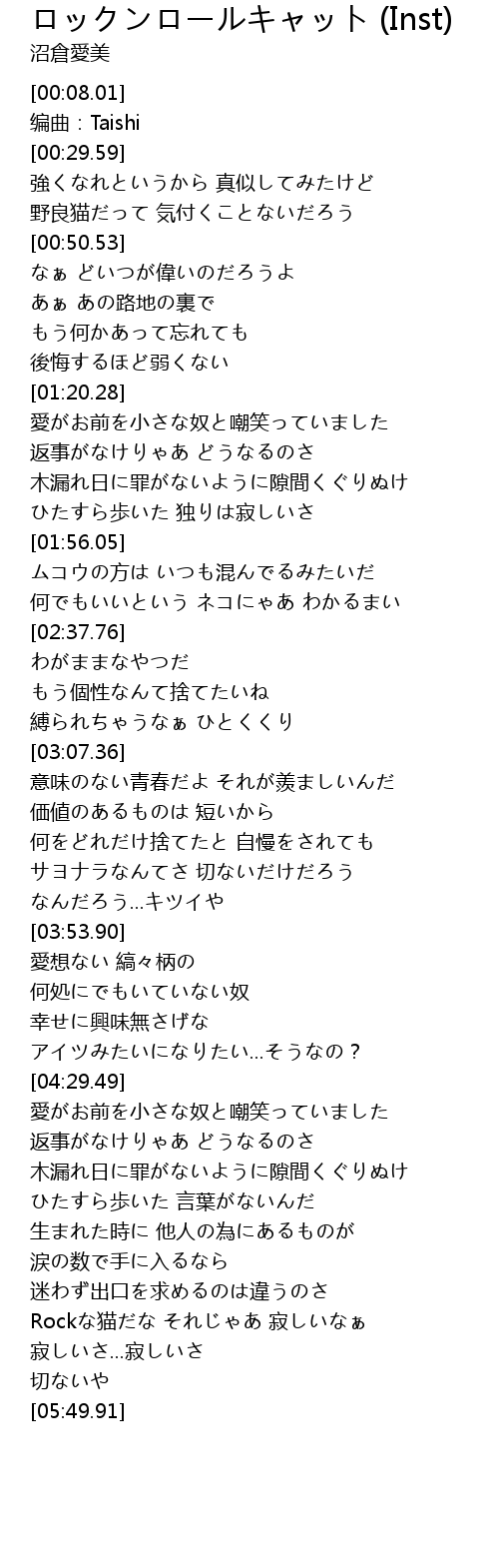 | [05:26.71] | Rockな猫だな それじゃあ 寂しいなぁ |