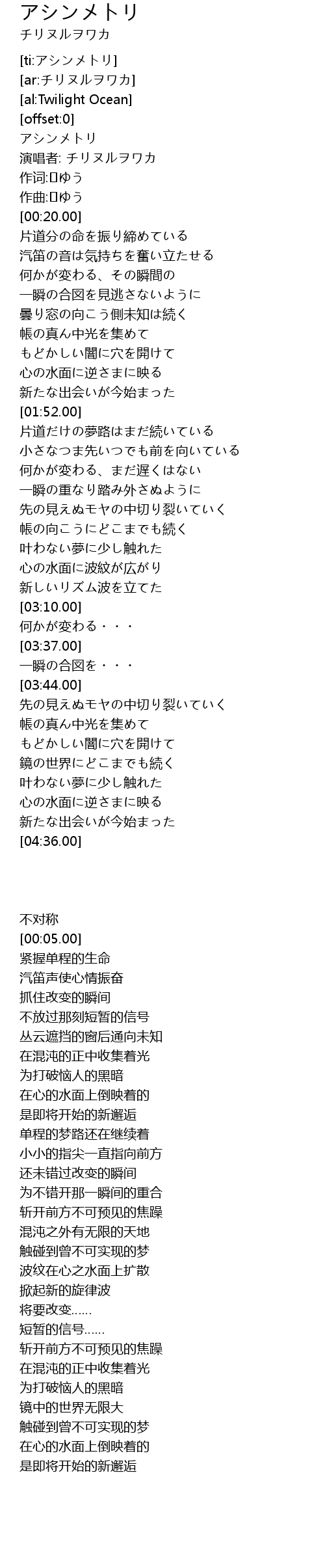 | [00:05.00] | 演唱者: チリヌルヲワカ |