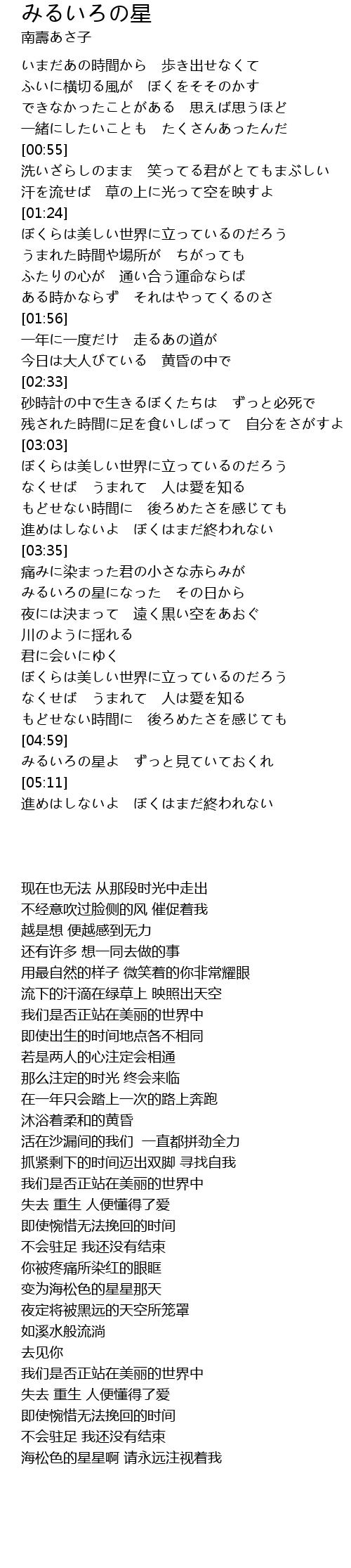 | [05:01] | みるいろの星よ ずっと見ていておくれ |