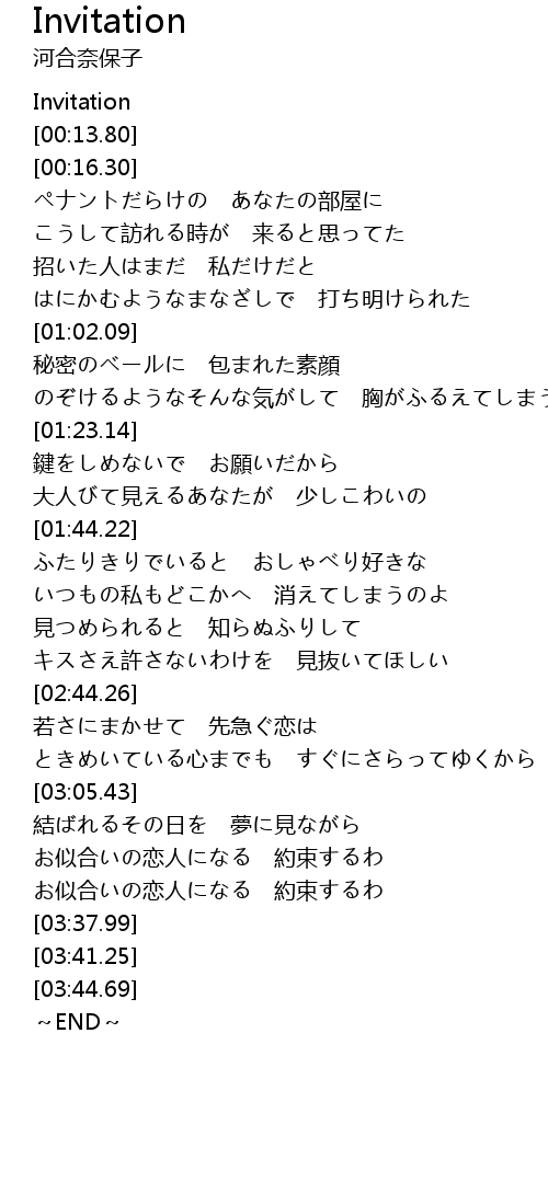 | [00:42.56] | 招いた人はまだ 私だけだと |