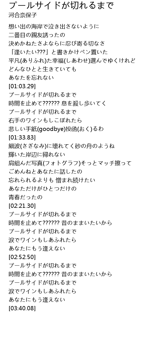| [03:19.79] | プールサイドが切れるまで |