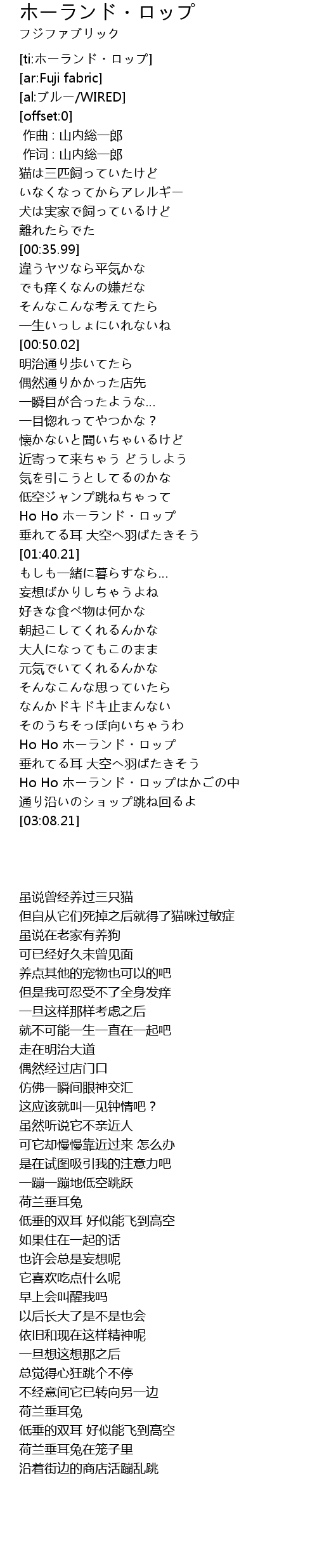 | [02:53.95] | Ho Ho ホーランド・ロップはかごの中 |