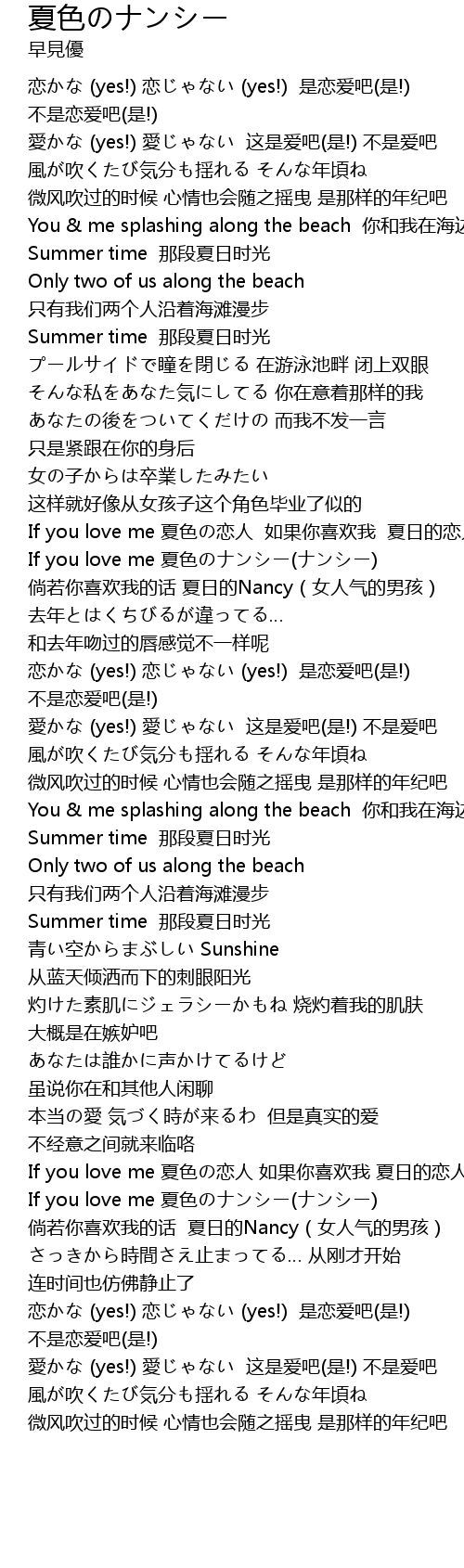 | [02:28.02] | If you love me 夏色のナンシー(ナンシー) 倘若你喜欢我的话 夏日的Nancy(女人气的男孩) |