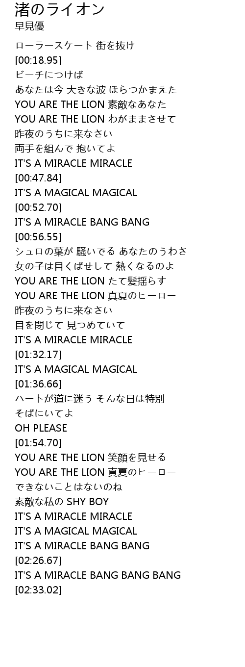 | [00:53.38] | IT'S A MIRACLE BANG BANG |