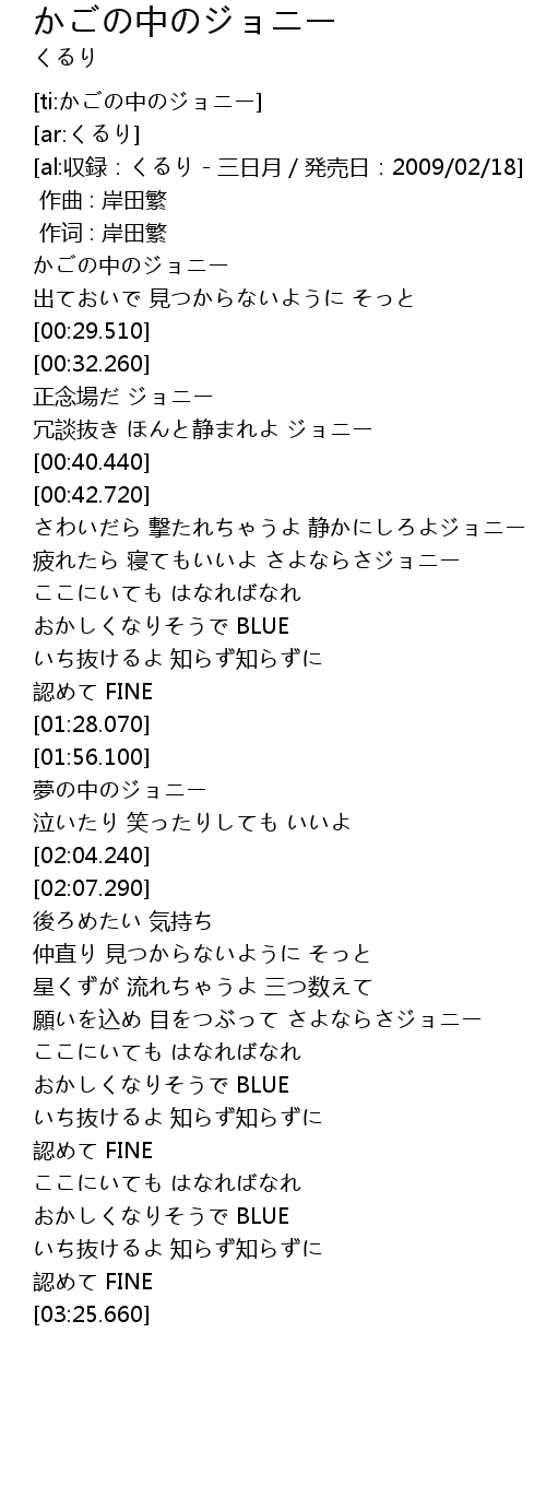 | [00:23.130] | かごの中のジョニー |