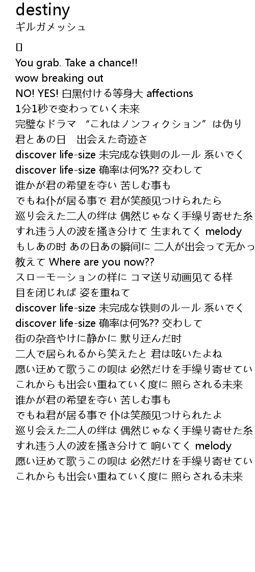 | 愿い迂めて歌うこの呗は 必然だけを手缲り寄せていく | |