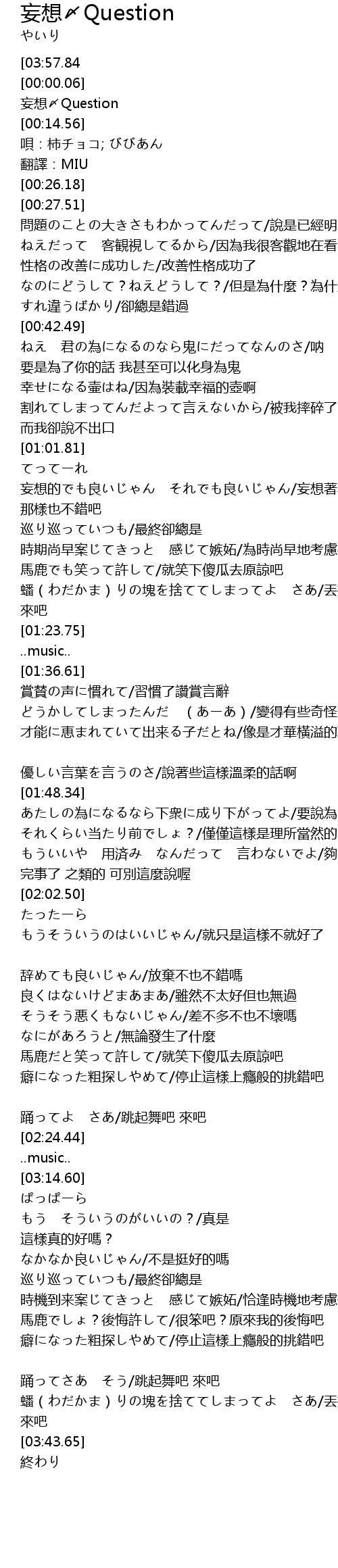 | [00:02.85] | 妄想〆Question |