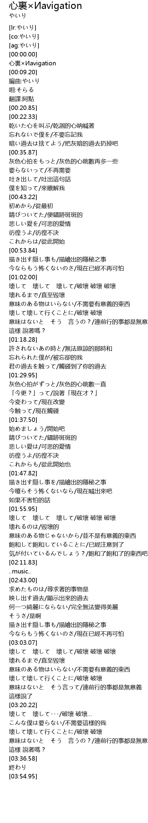 | [03:13.88] | 壊して壊して行くことに/破壞 破壞 |