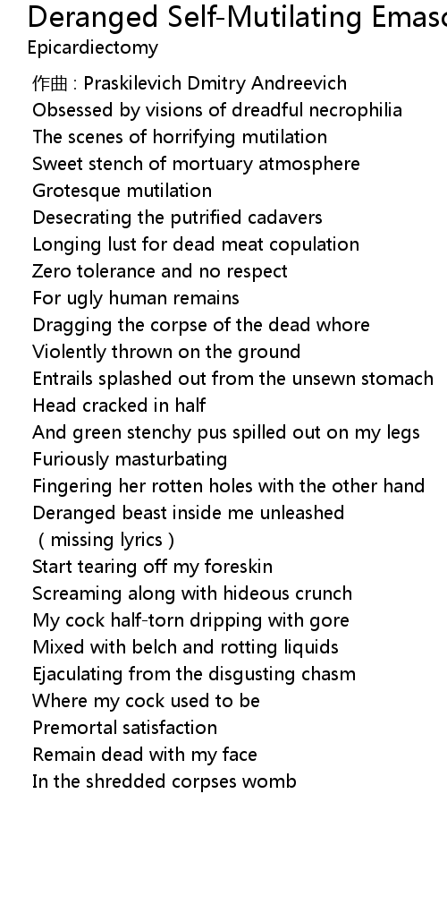 | 歌曲 | Deranged Self-Mutilating Emasculation |