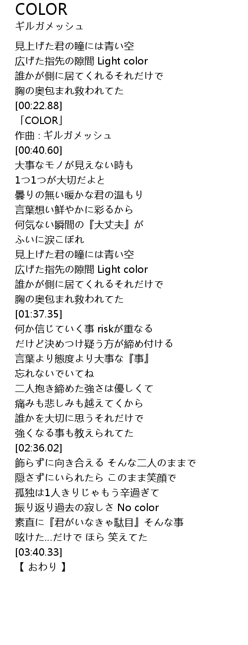 | [00:25.60] | 「COLOR」 |