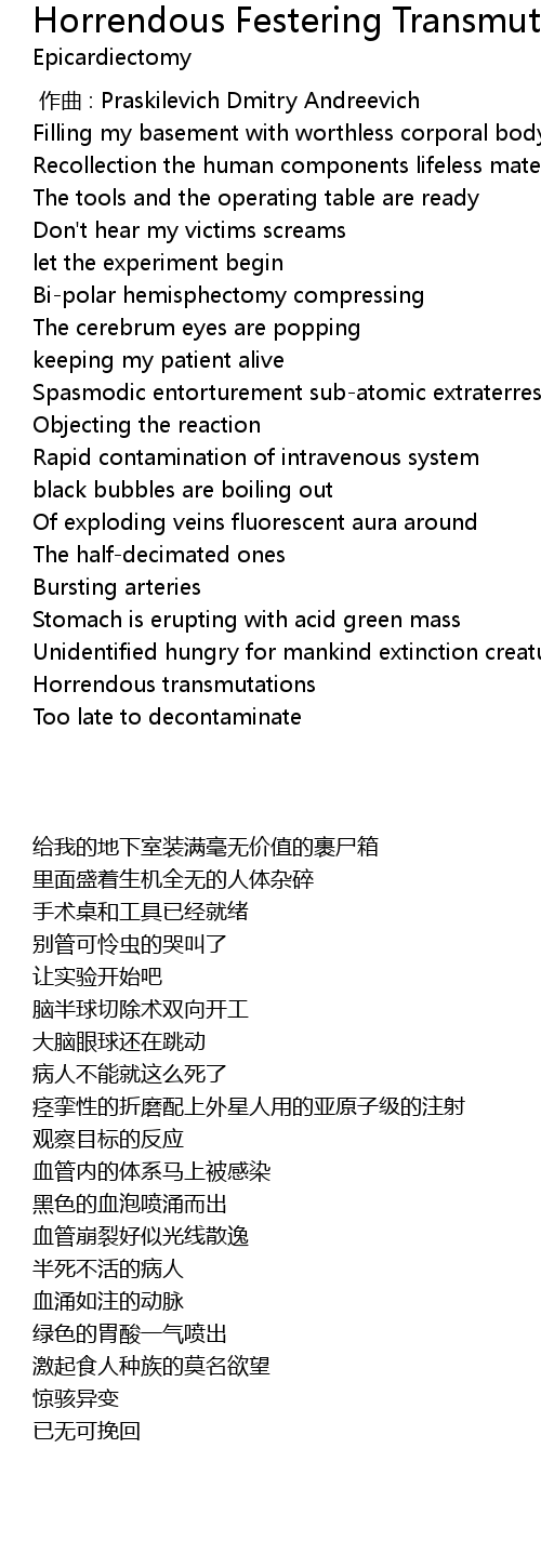 | 歌曲 | Horrendous Festering Transmutations |