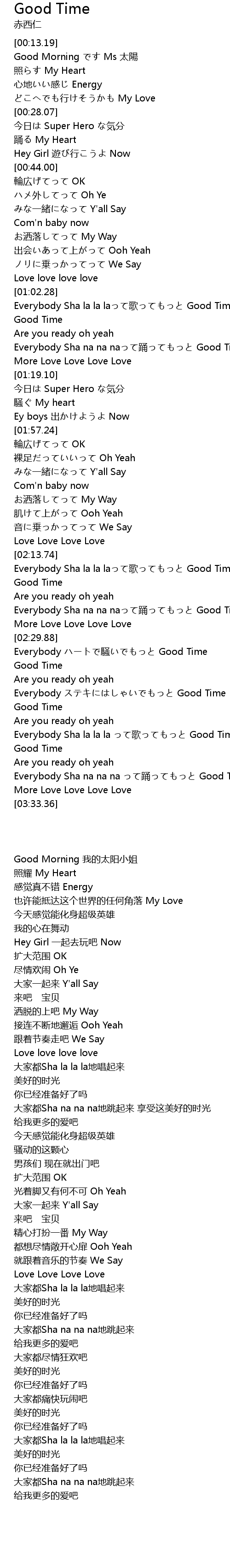 | [03:17.29] | Everybody Sha la la la って歌ってもっと Good Time |