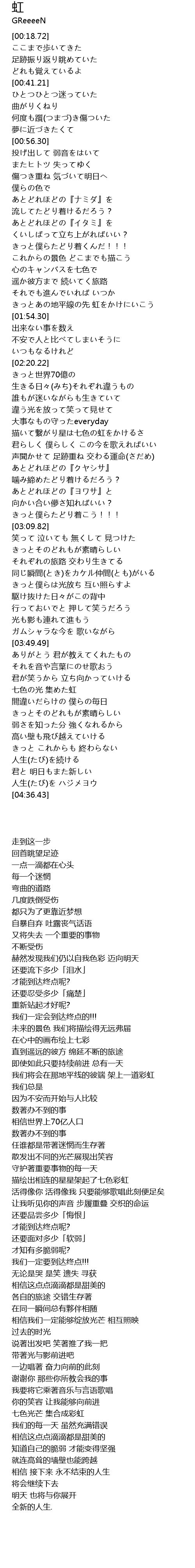 | [04:01.48] | 七色光芒 集合成彩虹 |