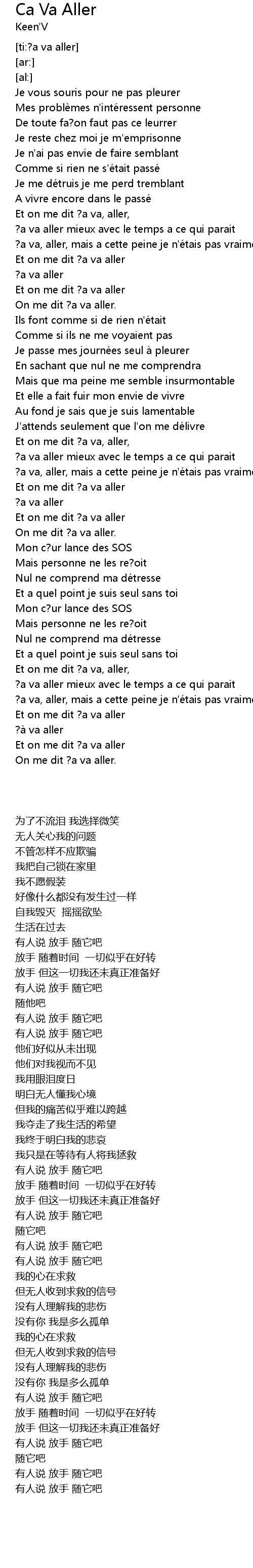 | [00:59.85] | Et on me dit ?a va, aller, |