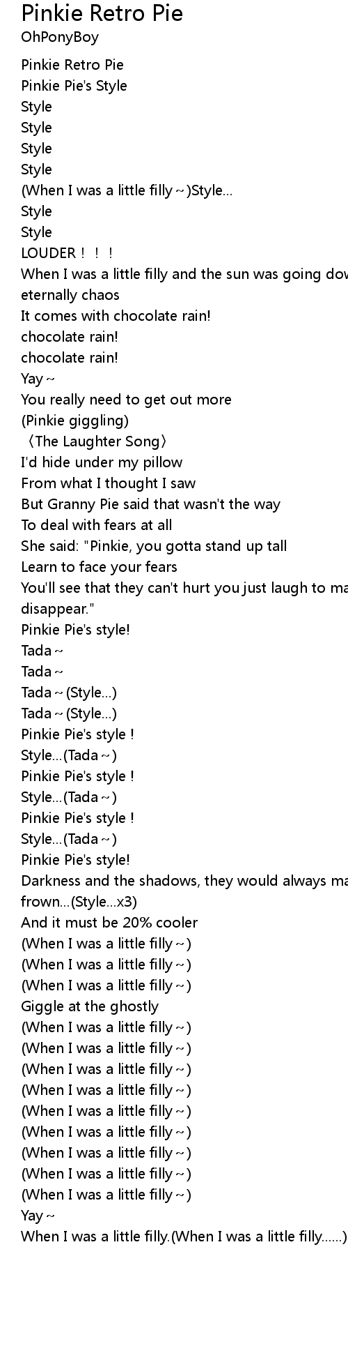| [00:11.87] | Pinkie Pie's Style |