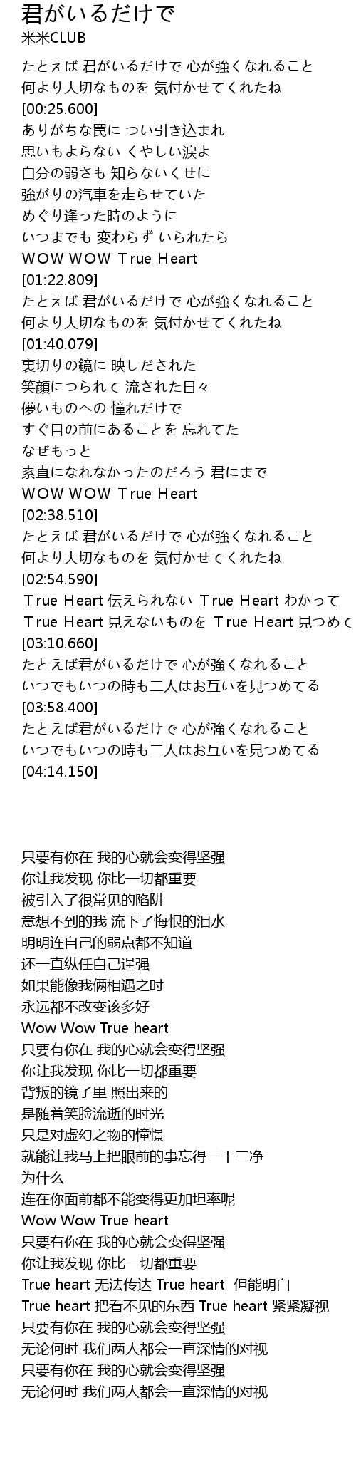 | [02:31.310] | WOW WOW True Heart |