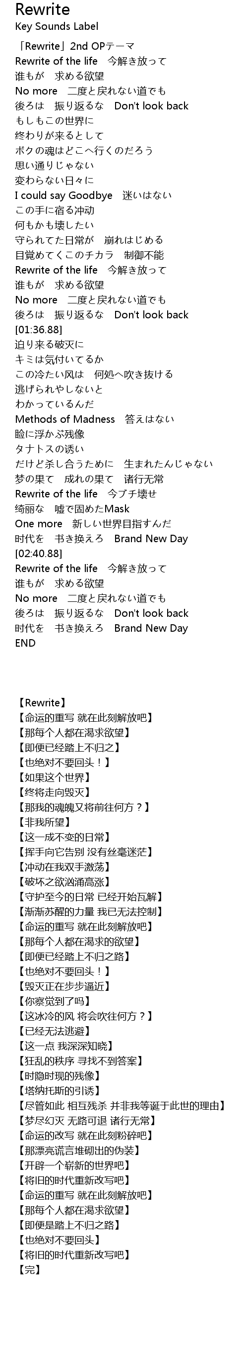 | [00:01.36] | 「Rewrite」2nd OPテーマ |