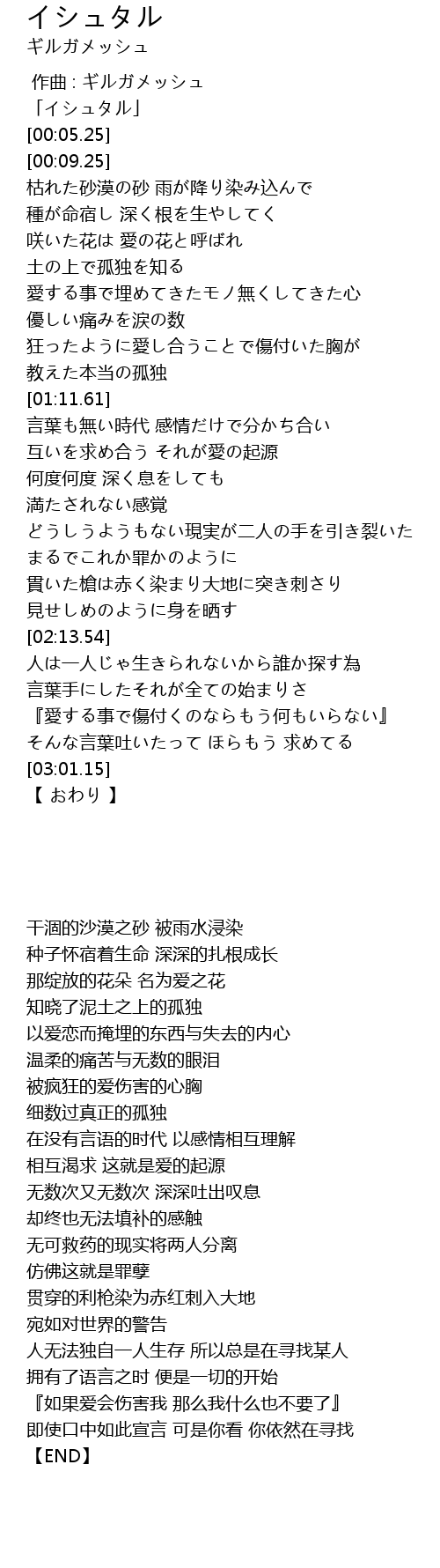| [00:00.00] | 作曲 : ギルガメッシュ |